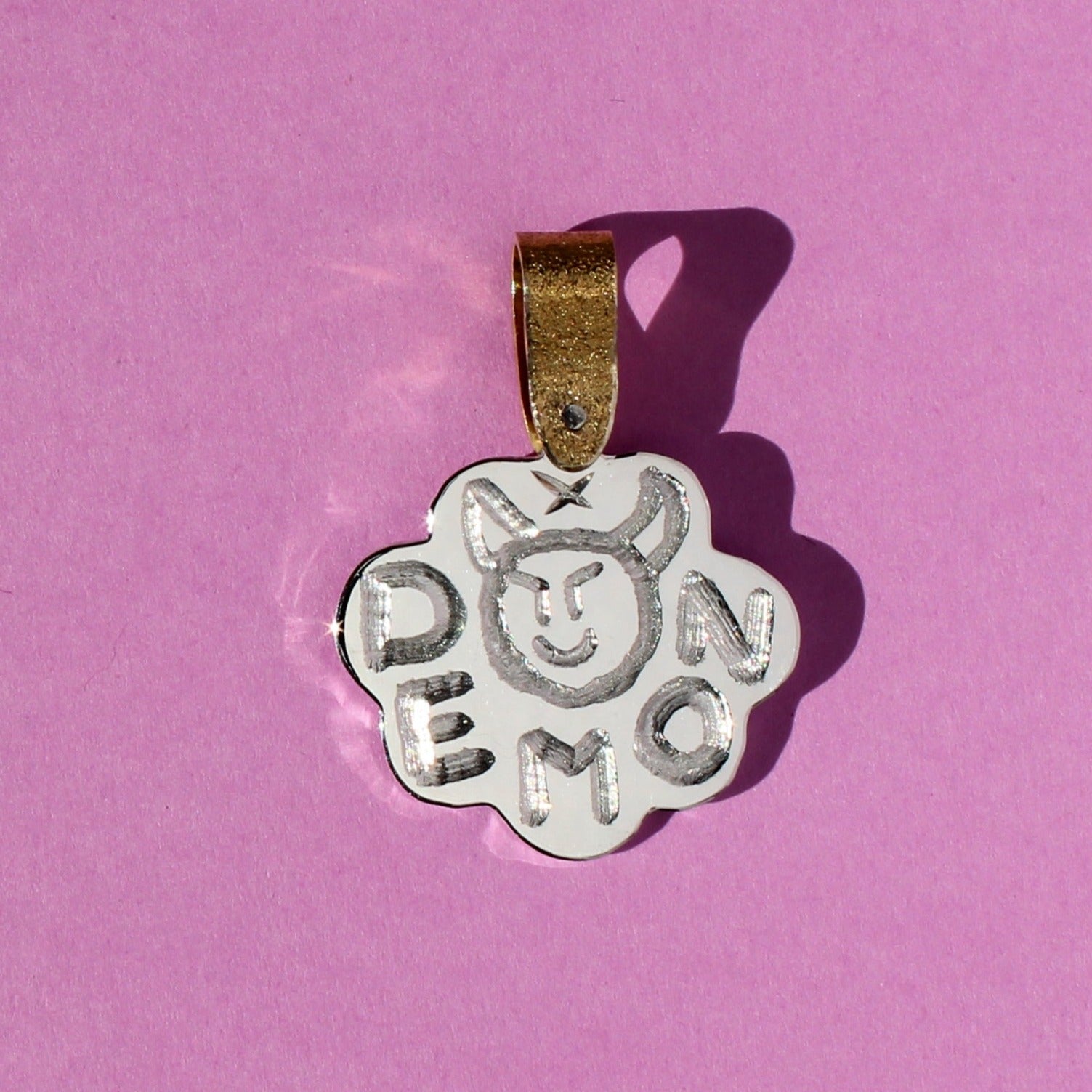 Pendants are made in NYC, each uniquely hand carved using alternative engraving techniques inspired by graffiti processes.