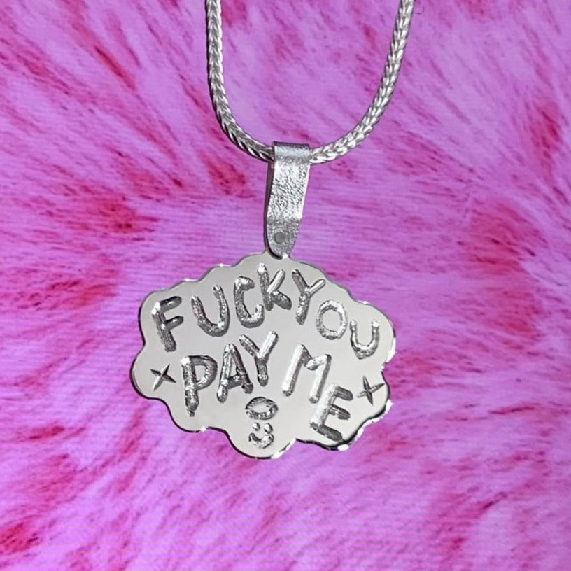 Pendants are made in NYC, each uniquely hand carved using alternative engraving techniques inspired by graffiti processes.