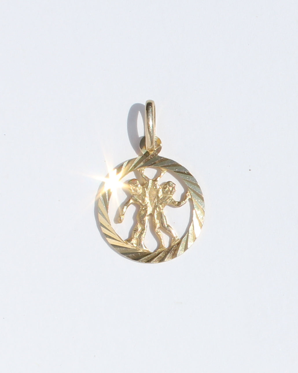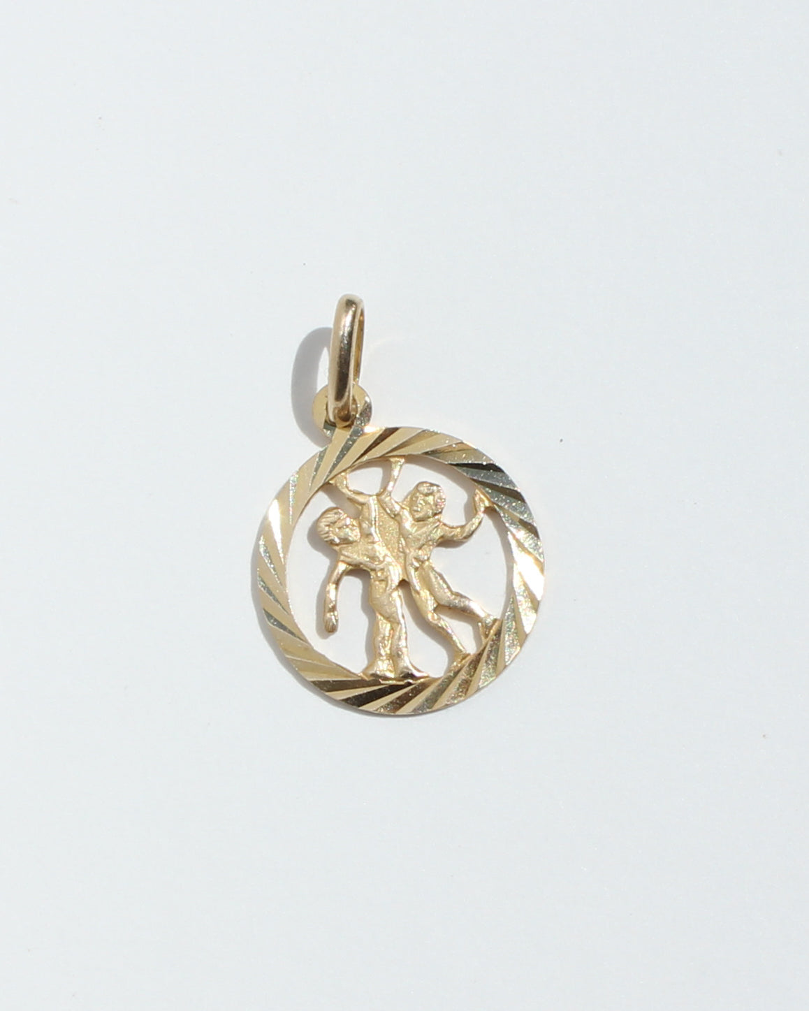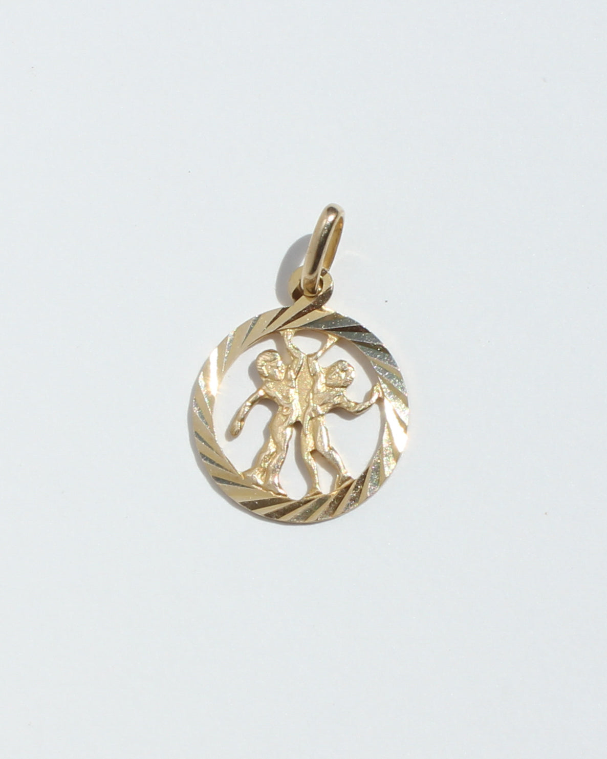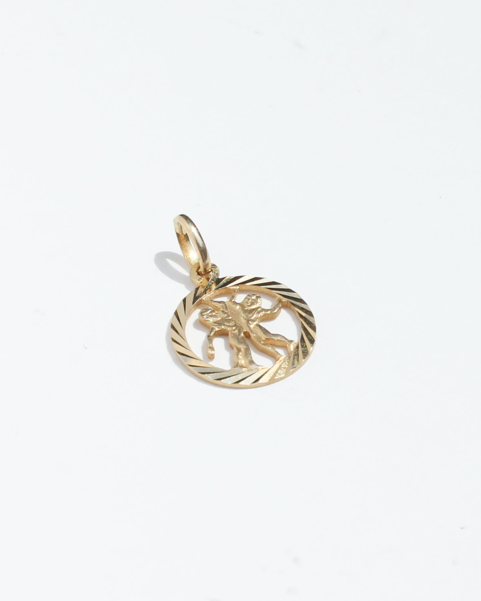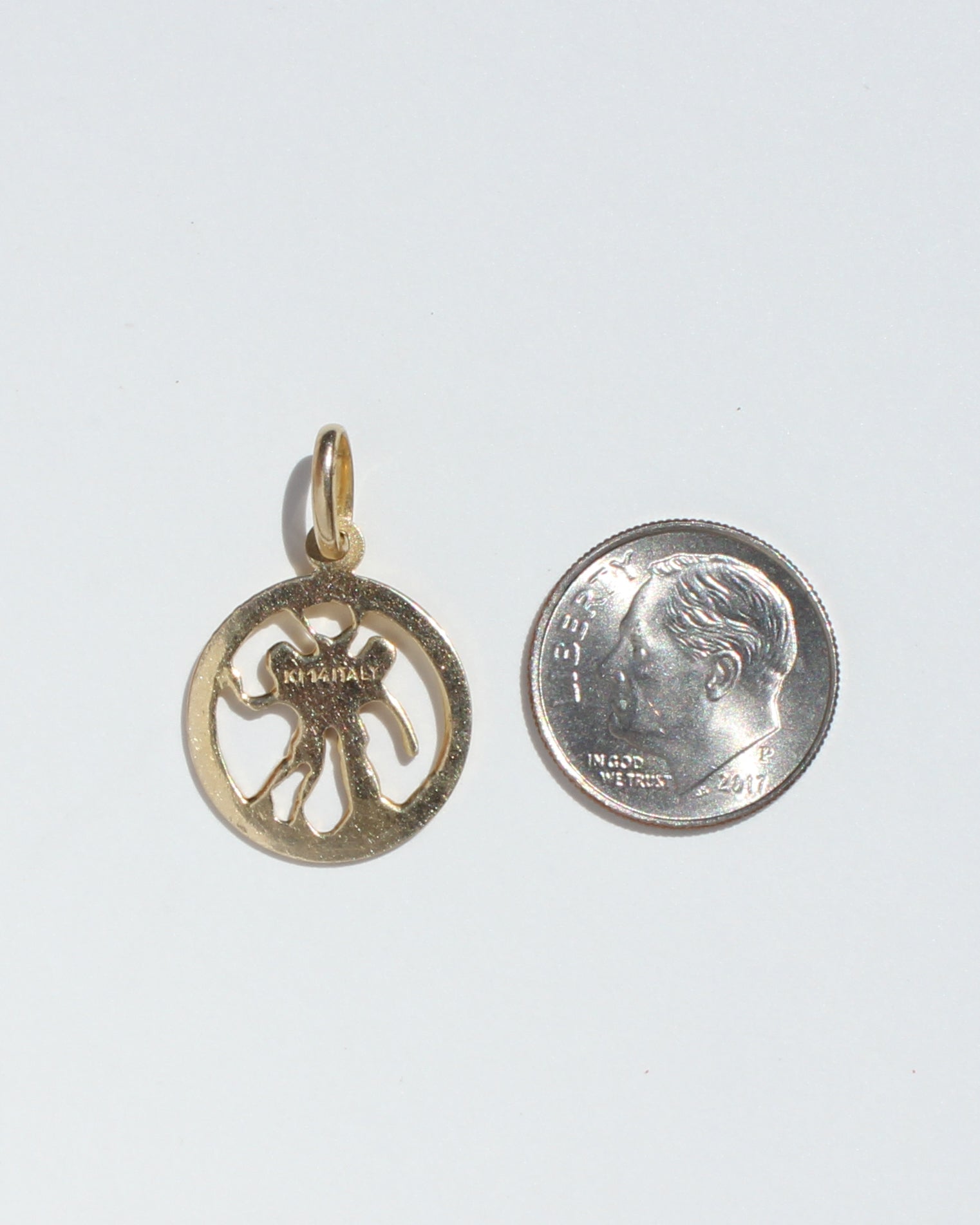 KJ curated find. This 14 karat solid gold rescue is a sustainable treasure. Machine turned border detail really makes this piece sparkle, and the combination of satin and high polish really makes the charm pop. It has an excellent weight to it, too!