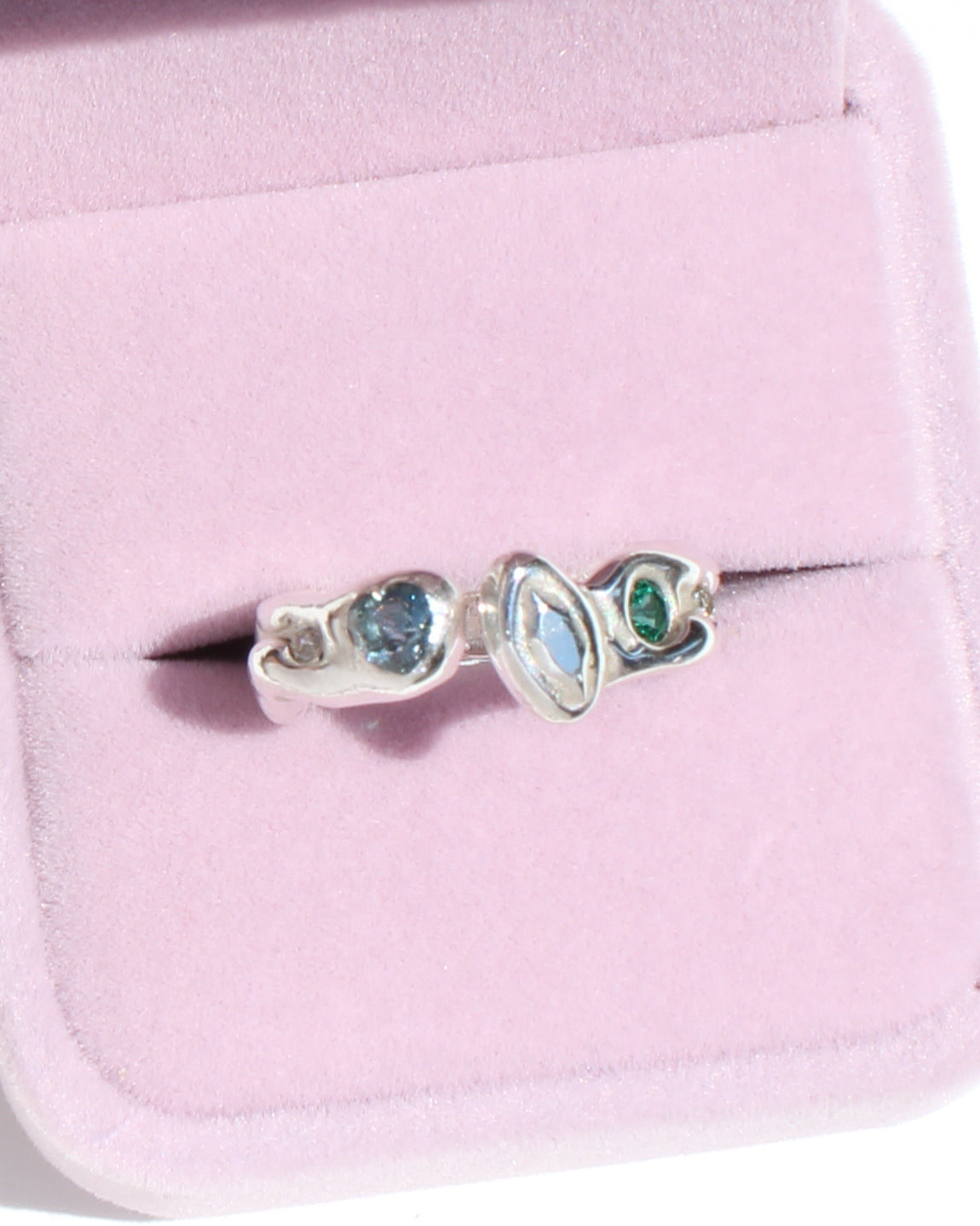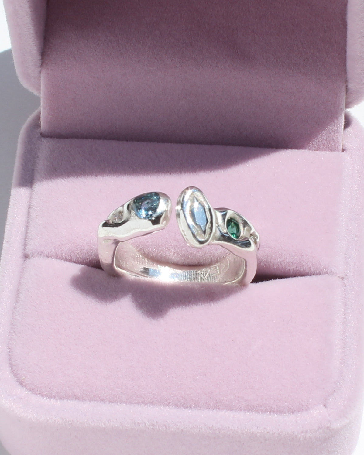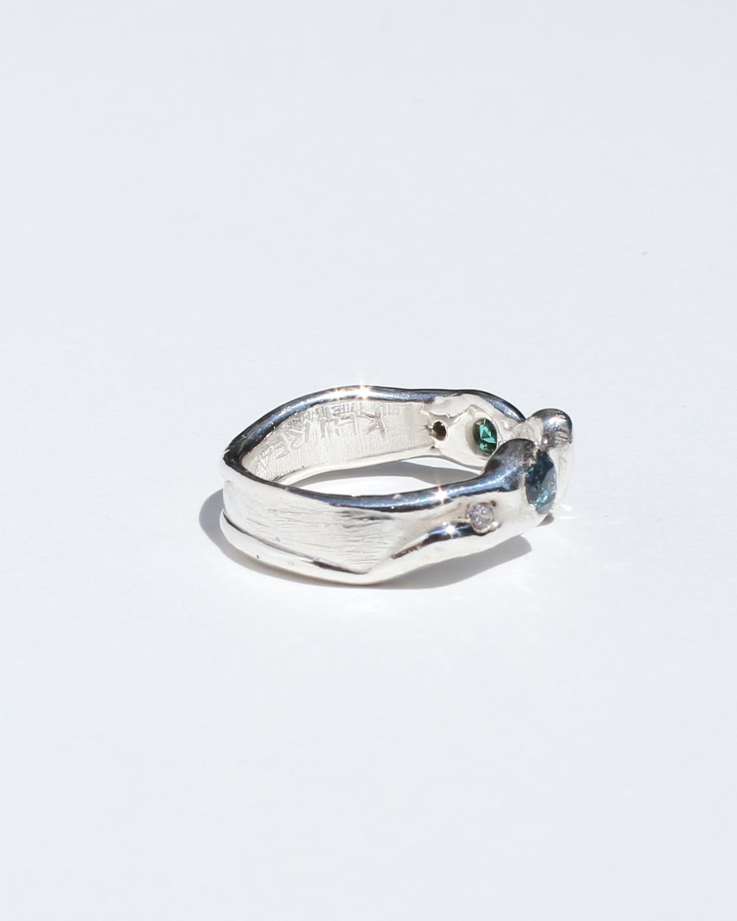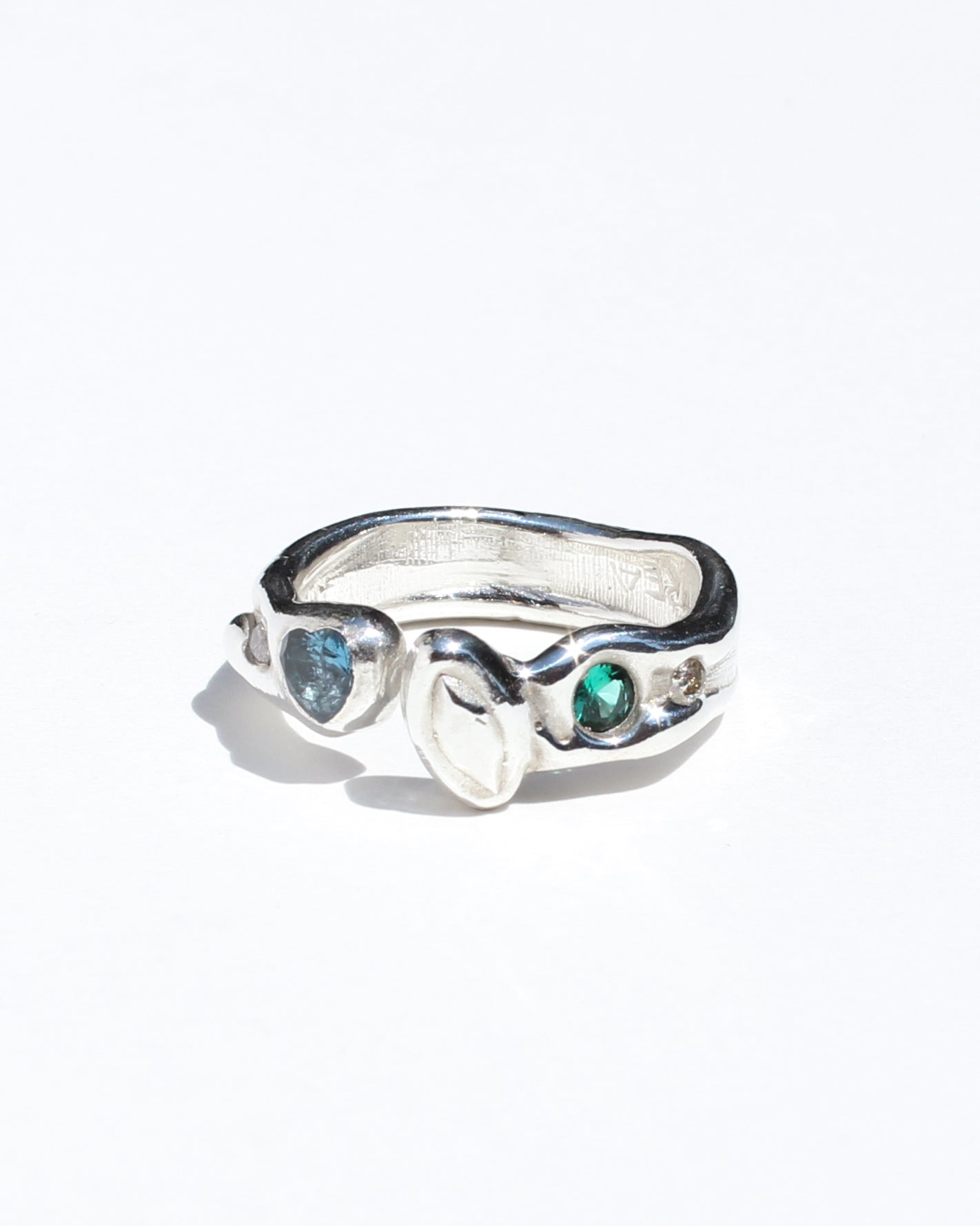 Please note! One of the stones has subtle internal cracking as a result of the casting process. This type of setting is pretty secure, and I wear a similar internally cracked stone every day without issue, but this piece should be worn with a bit of extra care. (TBH I once tried breaking a similar stone out of a similar setting and went at it with a HAMMER and CHISEL for 10 minutes before I was able to break it apart to get it out, fwiw!) The plus side is, this means I am able to bring you this ring at a nicer price. Lucky you!