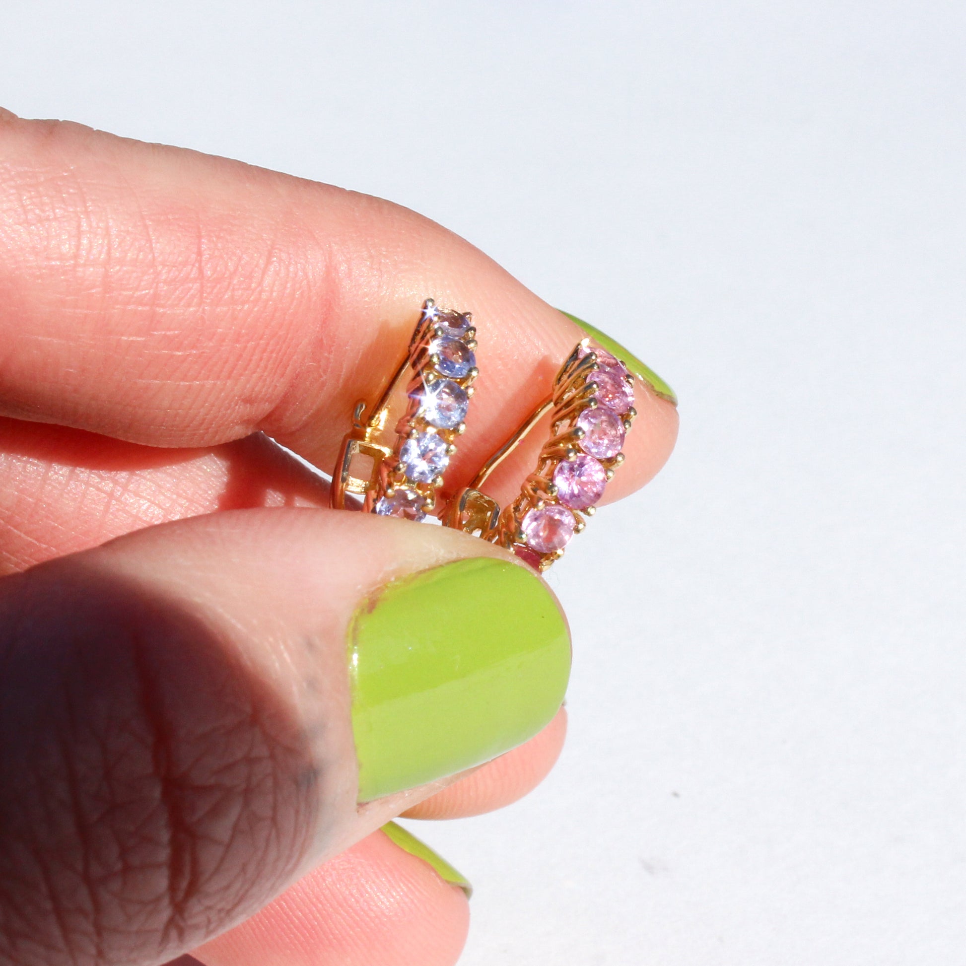KJ curated find!!! This pair of preloved 14 karat solid gold rescues are perfectly mismatched, both the same size and containing same number of gemstones. They look sooooo cute together!