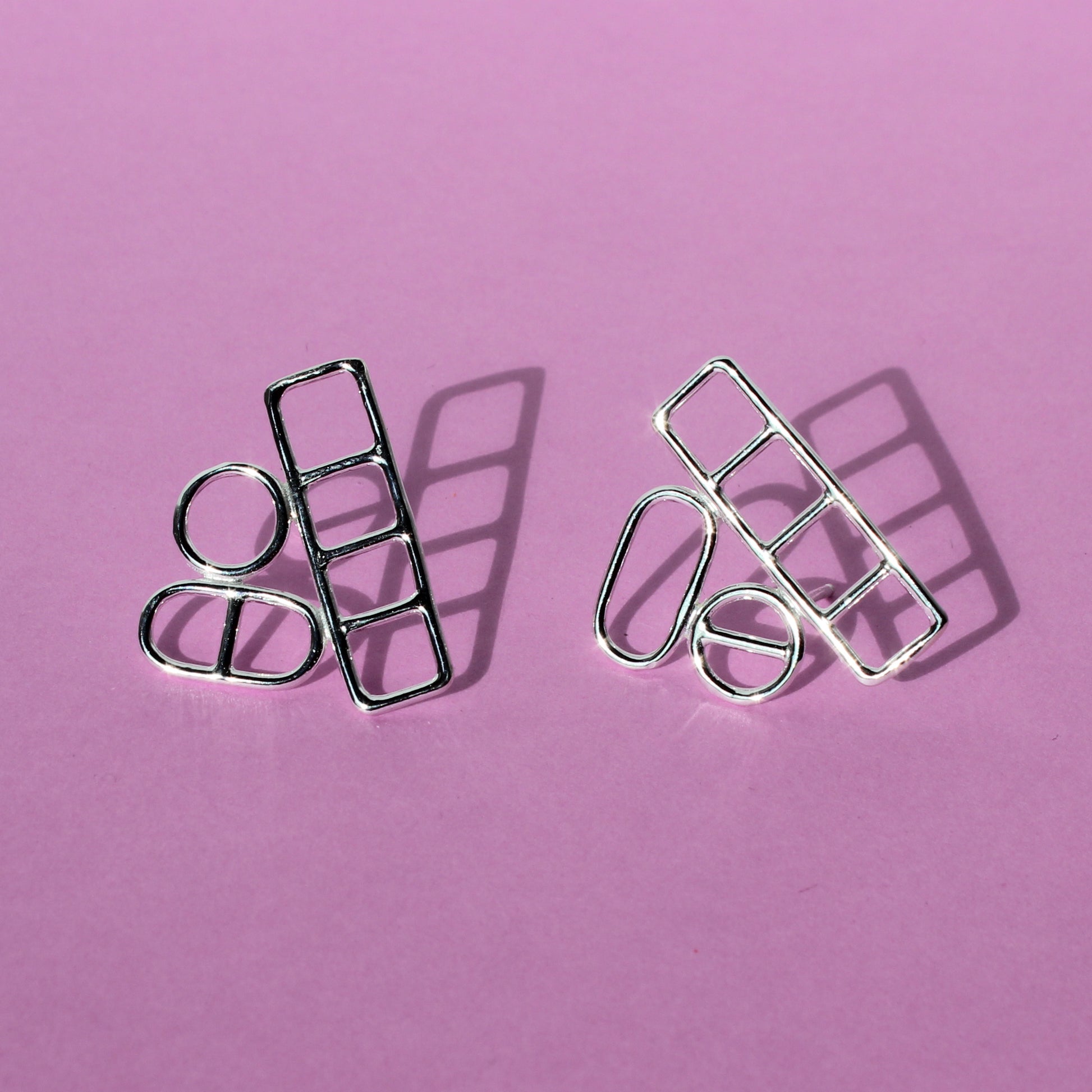 pair of the original finalized sample. hand soldered sterling silver wire. each earring measures 1" x 0.85".
