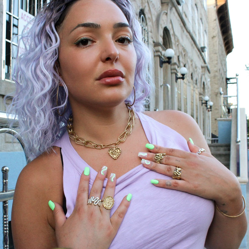 We use only recycled metals, minimize waste by making jewelry to order, and fabricate everything ethically in my NYC studio. Always.