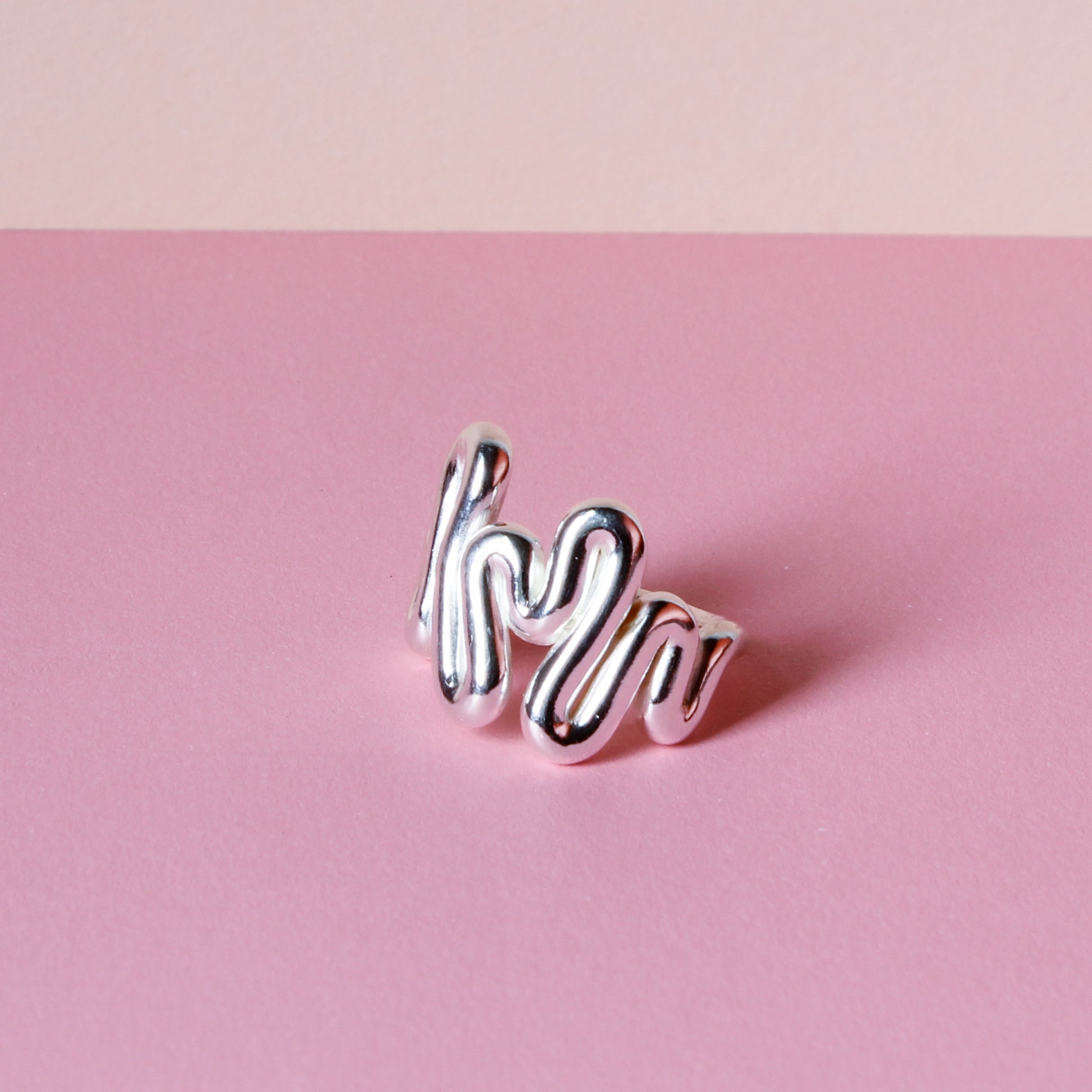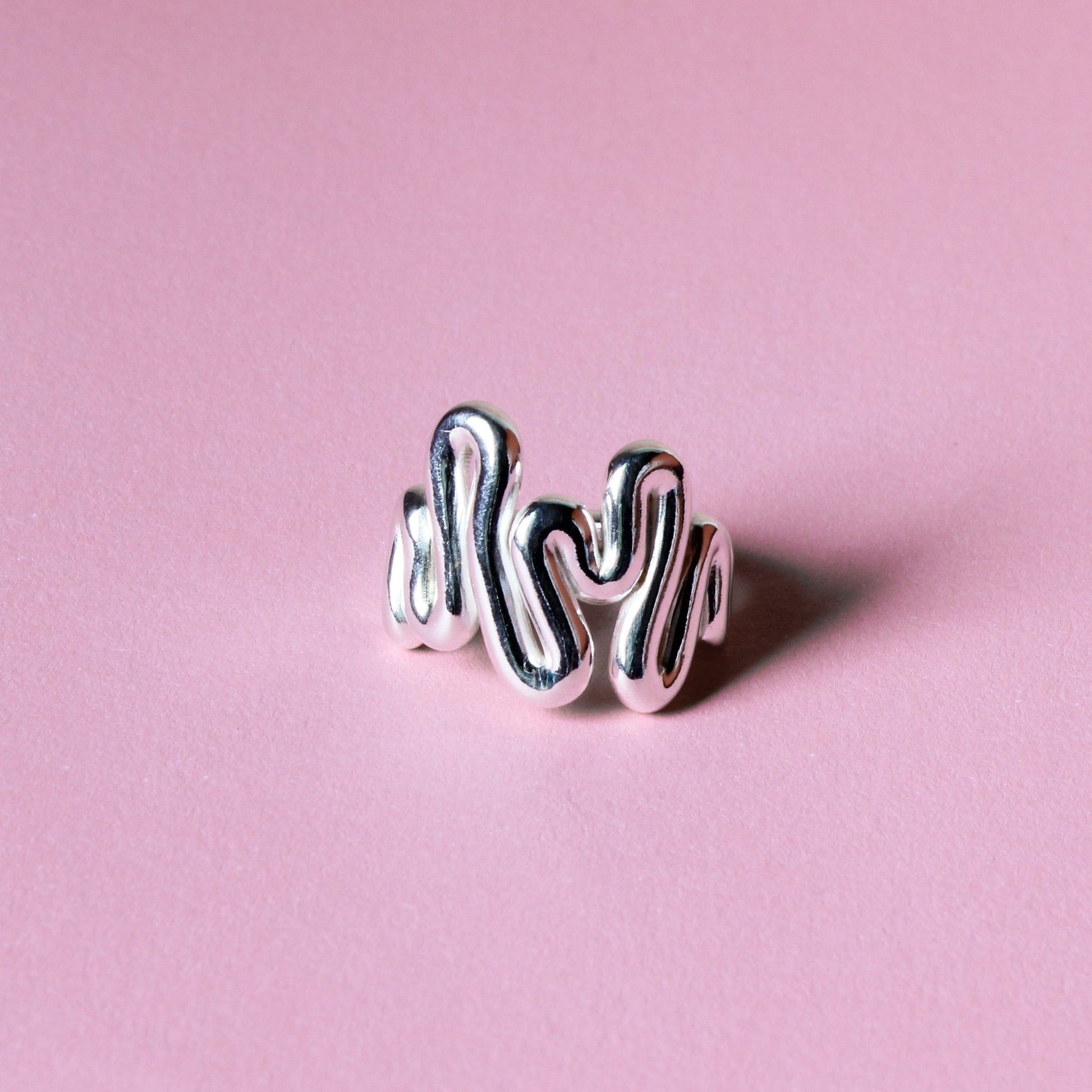 Size 7 Wavy ring. OK these sculptural rings are so fun. Each size has it's own design, so you can start building a cute collection for all your fingers. The rings are pretty accommodating, so if you're between sizes, I recommend sizing down.
